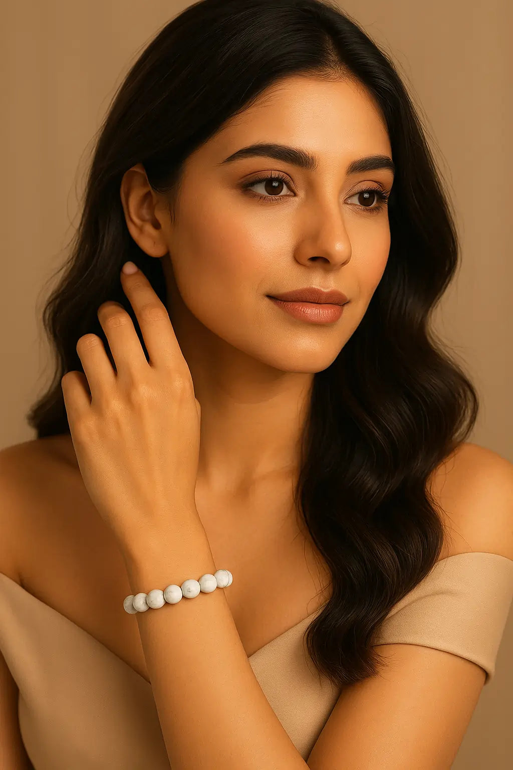 A timeless expression of calm and clarity — embrace inner peace with this elegantly handcrafted Howlite bracelet.
